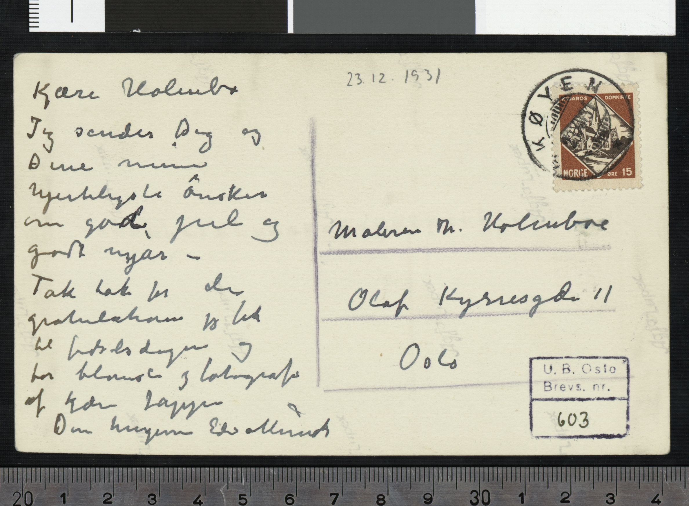 Brevs. 603 (PN 333), Nasjonalbiblioteket. Datert 23.12.1931. Brev til Thorolf Holmboe