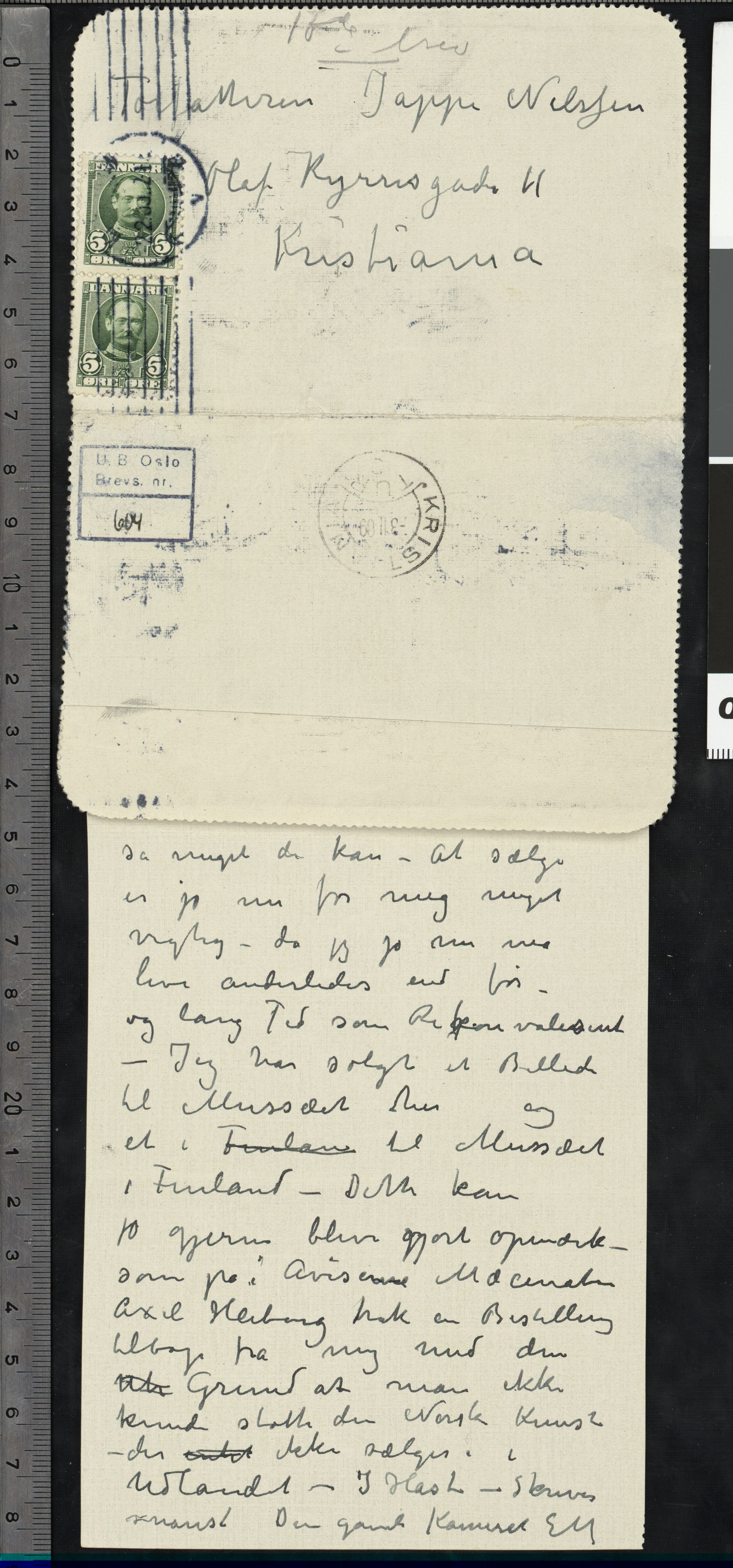 Brevs. 604 (PN 715), Nasjonalbiblioteket. Datert 2.2.1909. Brev til Jappe Nilssen