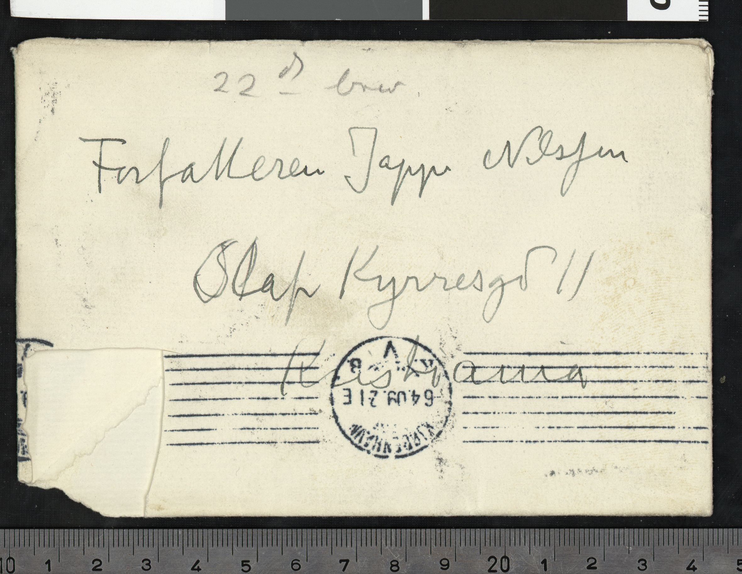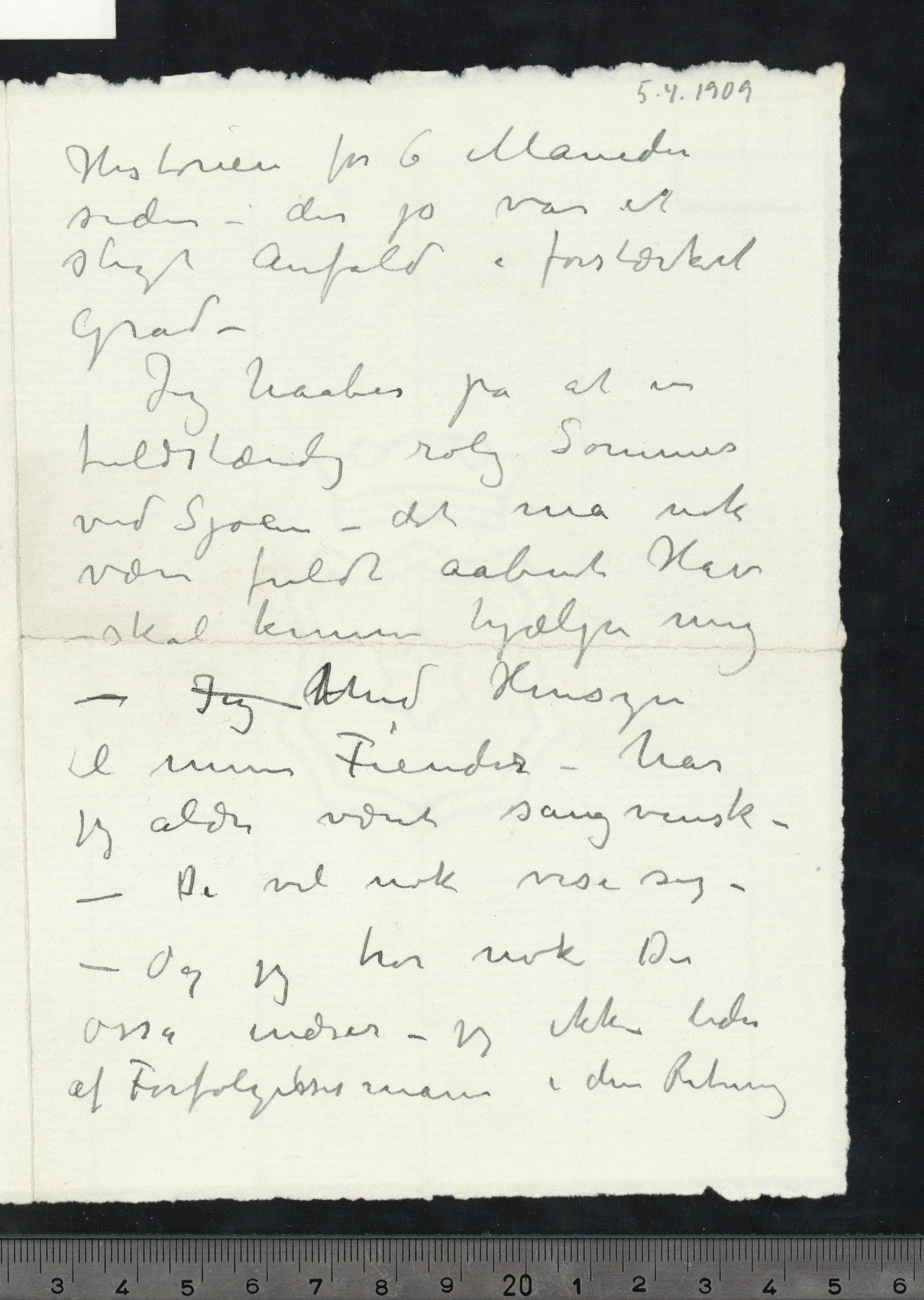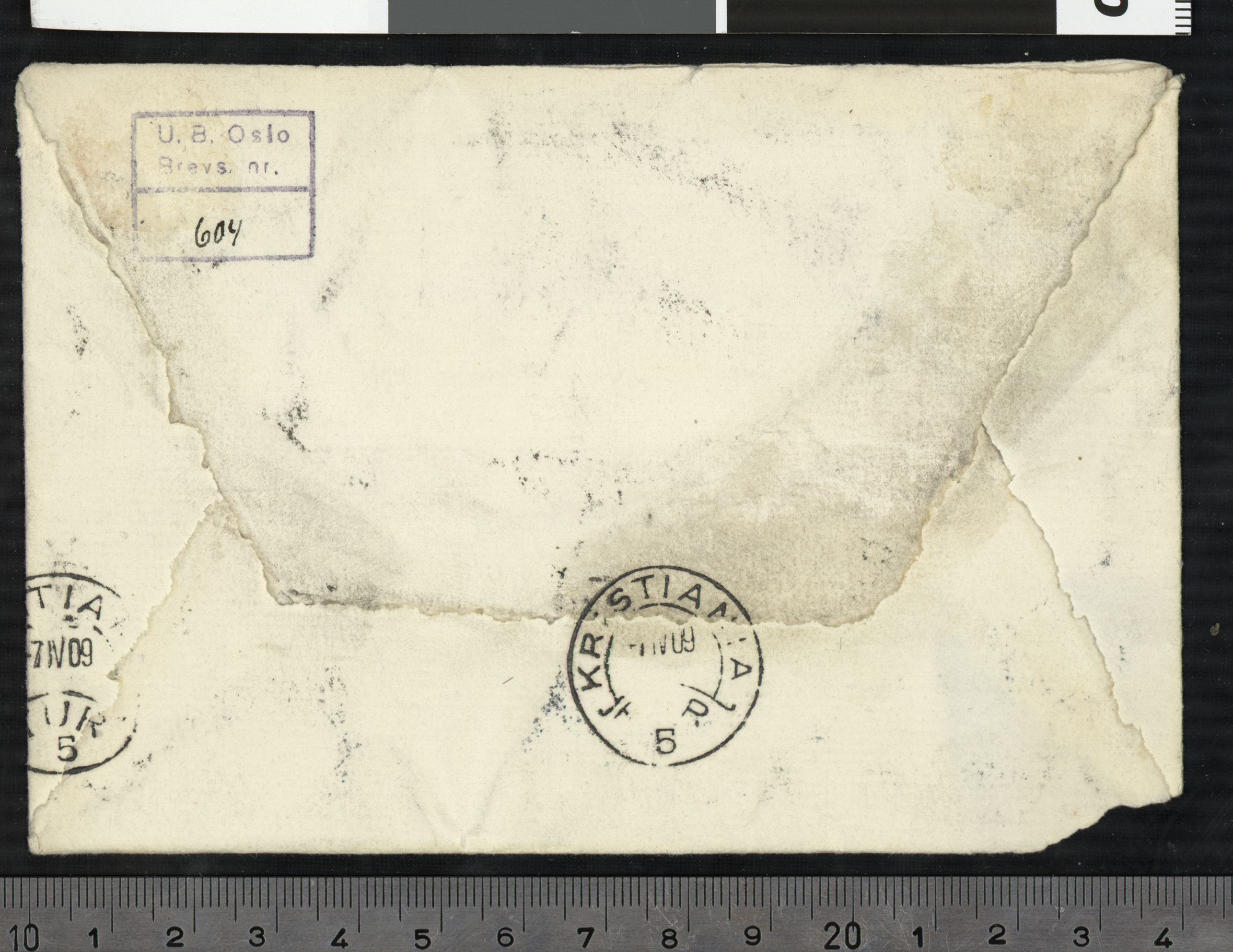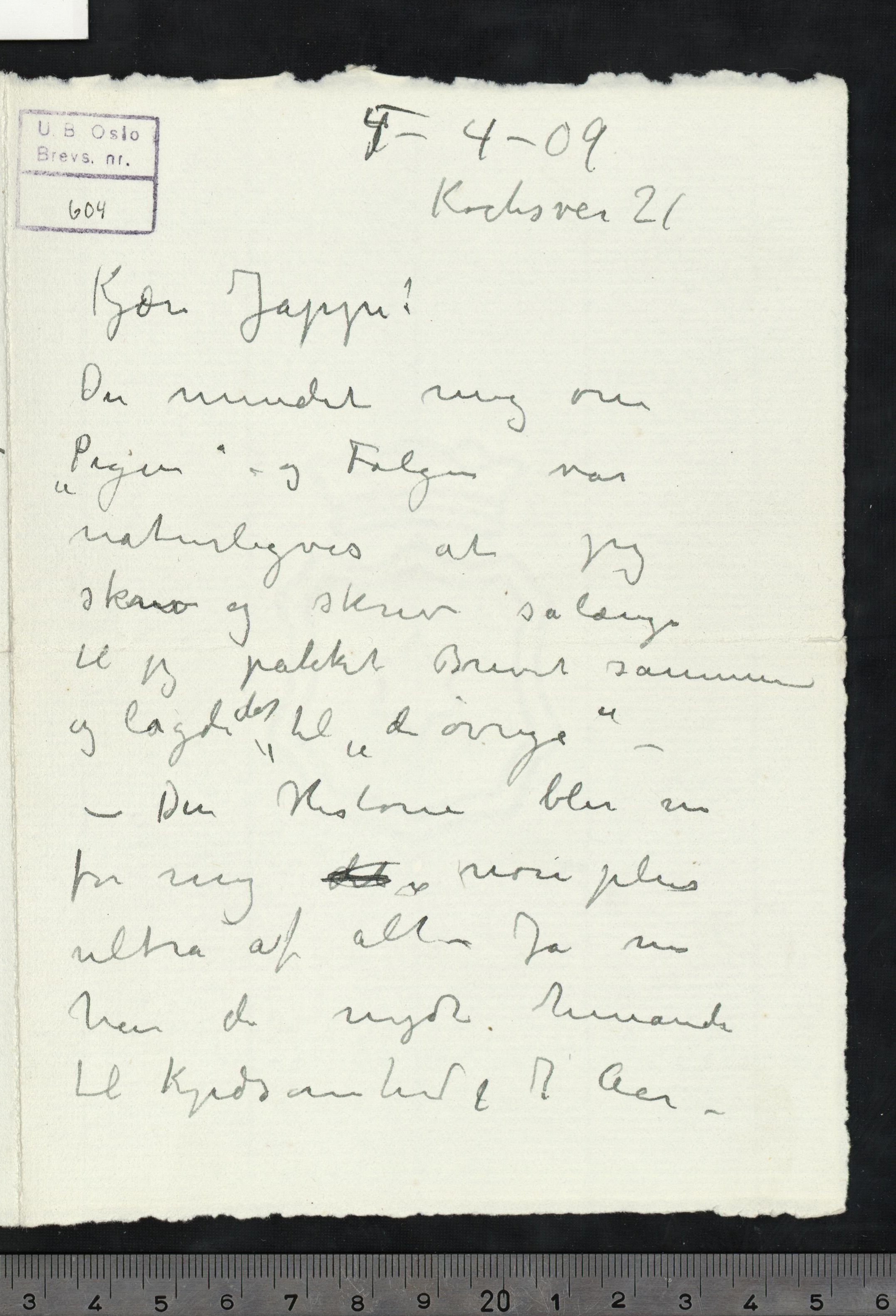 Brevs. 604 (PN 726), Nasjonalbiblioteket. Datert 5.4.1909. Brev til Jappe Nilssen
