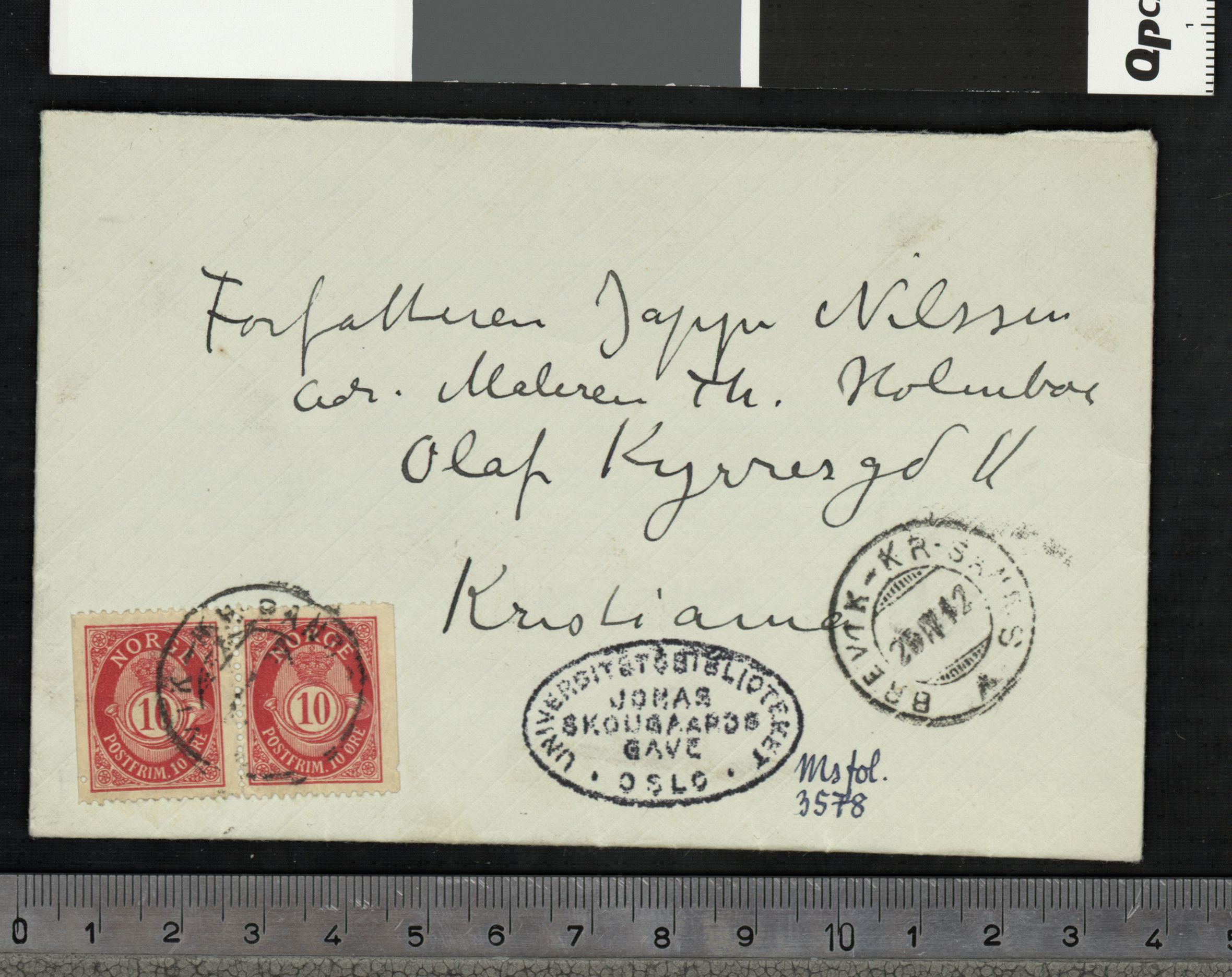 Ms.fol. 3578 (PN 751), Nasjonalbiblioteket. Datert 25.4.1912. Brev til Jappe Nilssen
