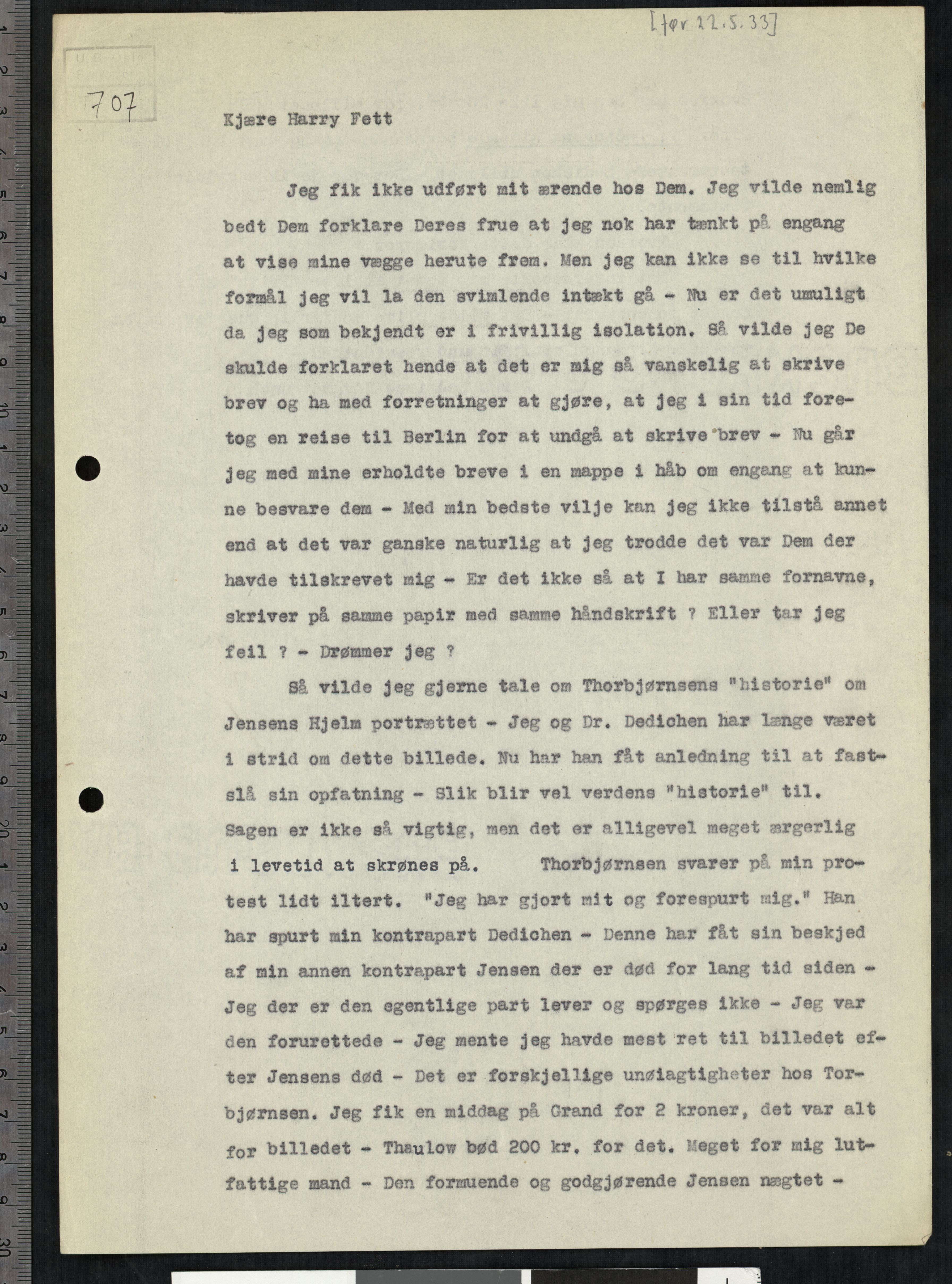 Brevs. 707 (PN 759), Nasjonalbiblioteket. Datert 1933. Brev til Harry Fett