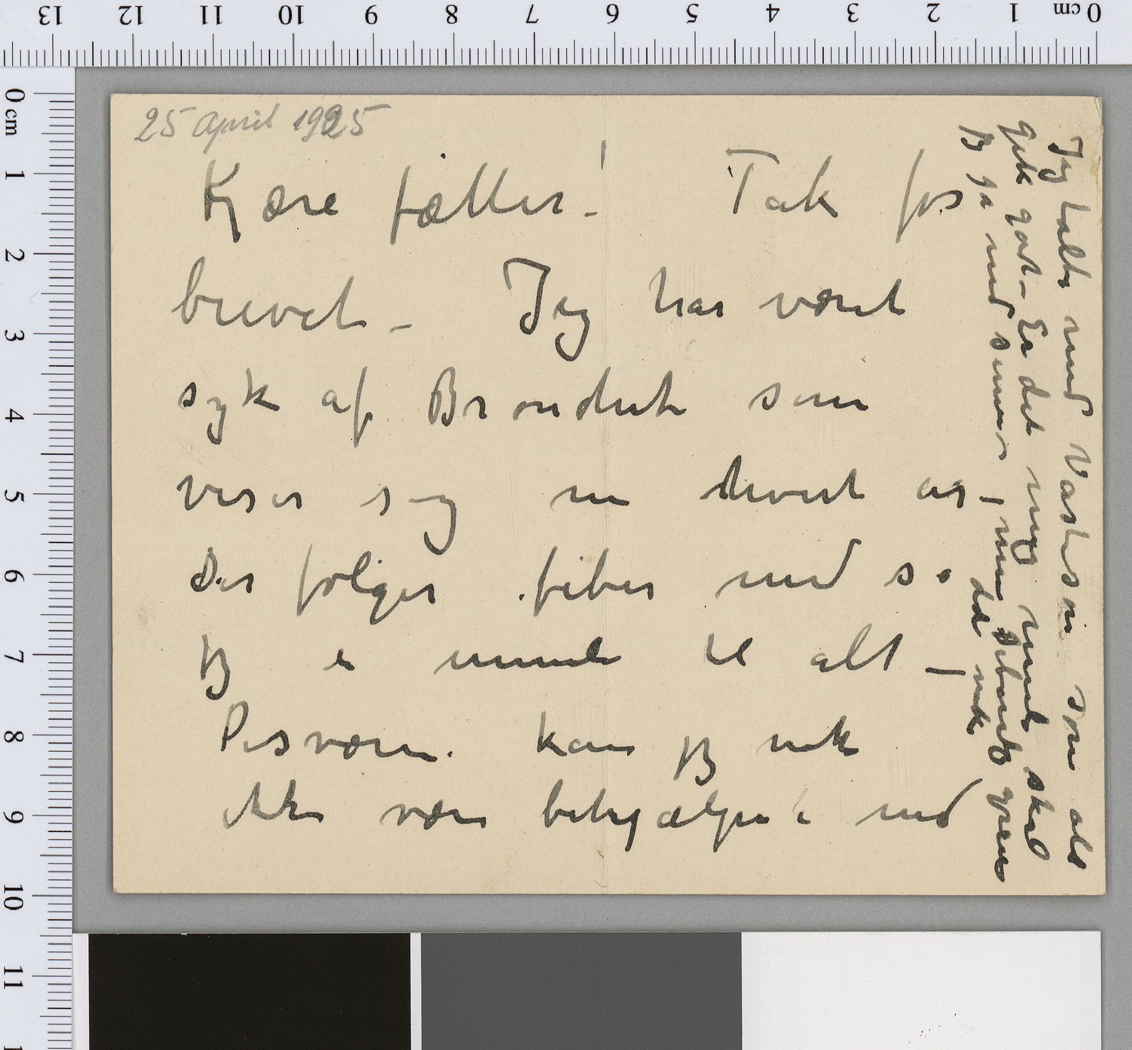 Ms.fol. 2071:1:24 (PN 769), Nasjonalbiblioteket. Datert 25.4.1925. Brev til Edvard Diriks