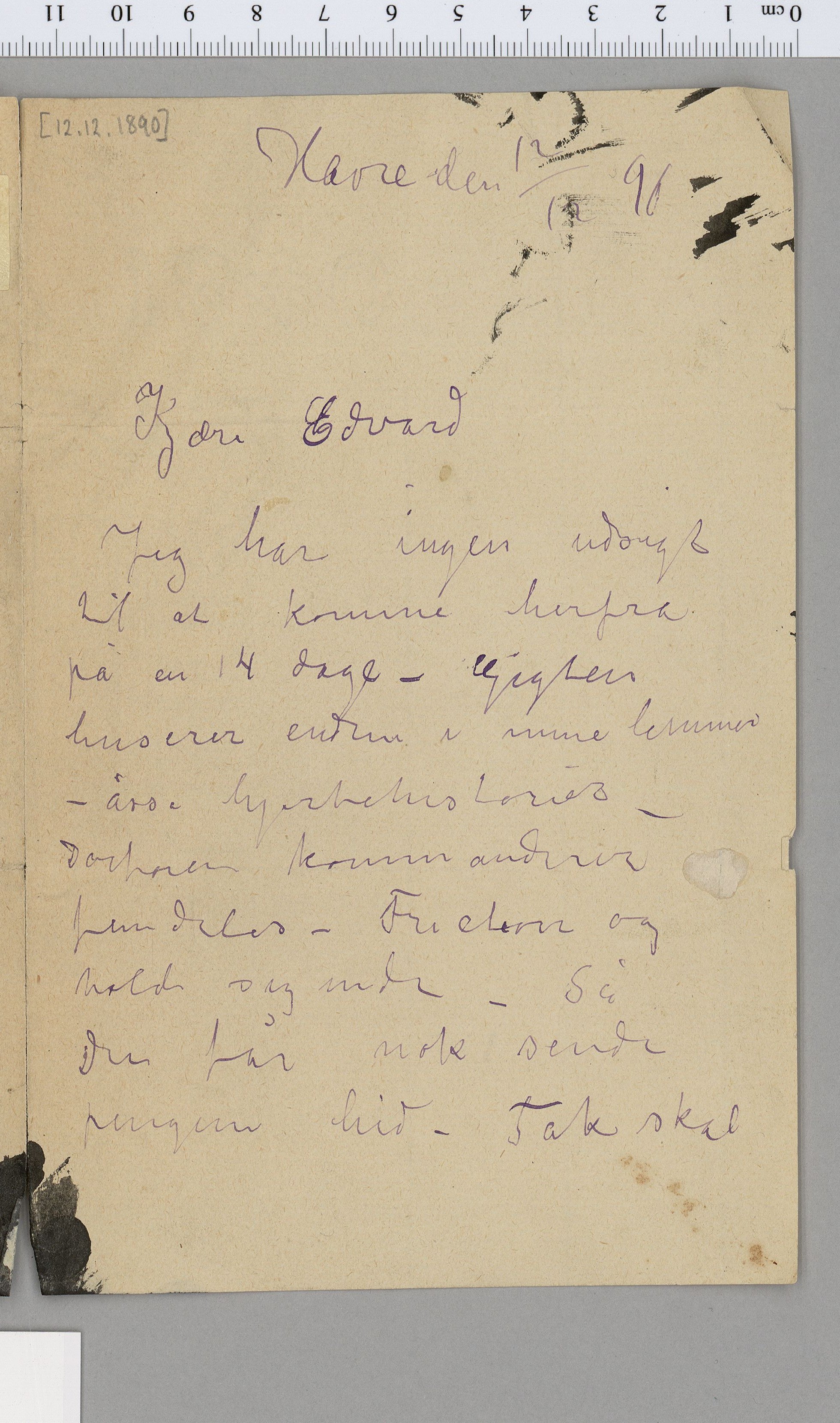 Ms.fol. 2071:5:20 (PN 771), Nasjonalbiblioteket. Datert 12.12.1890. Brev til Edvard Diriks