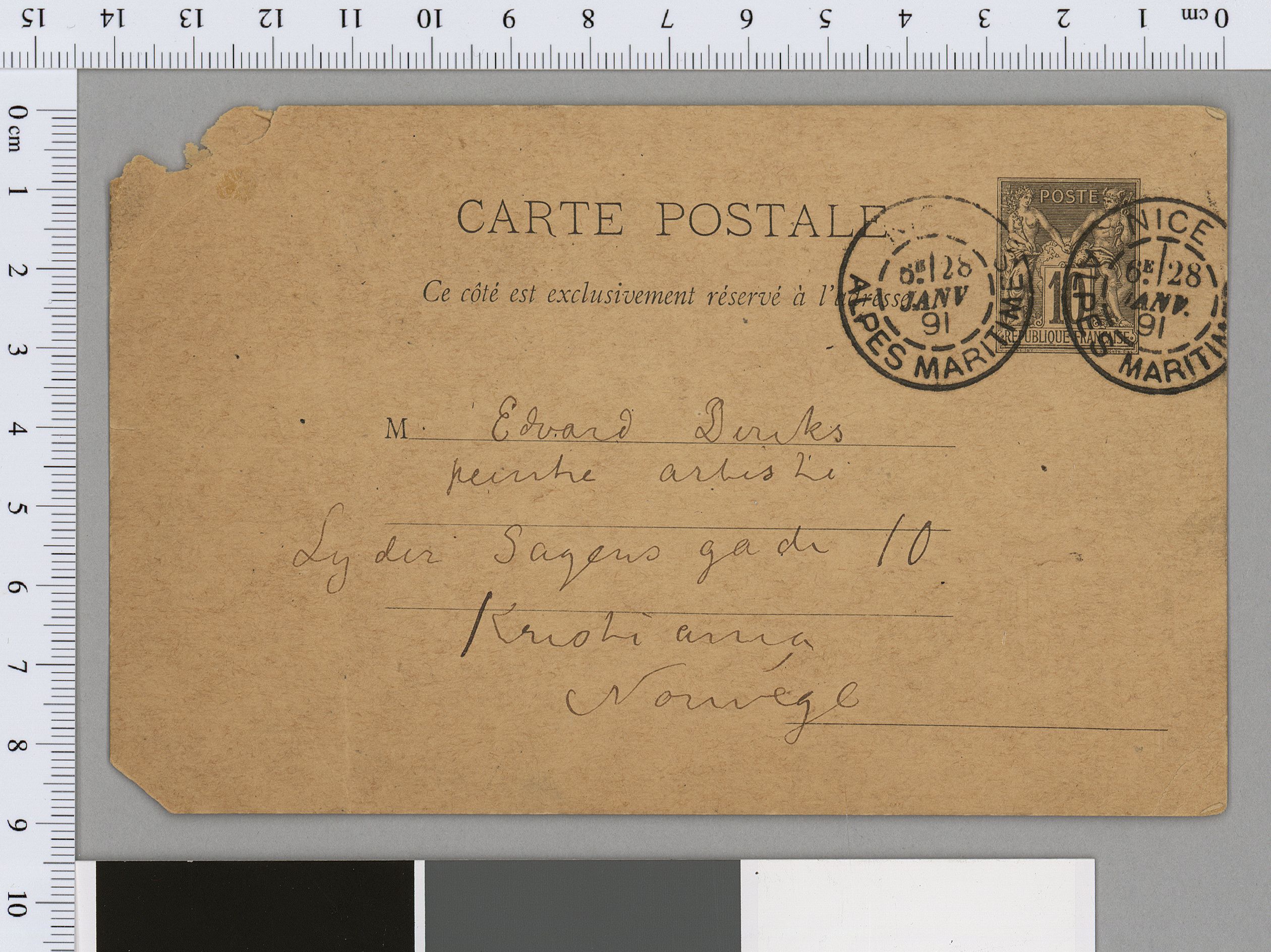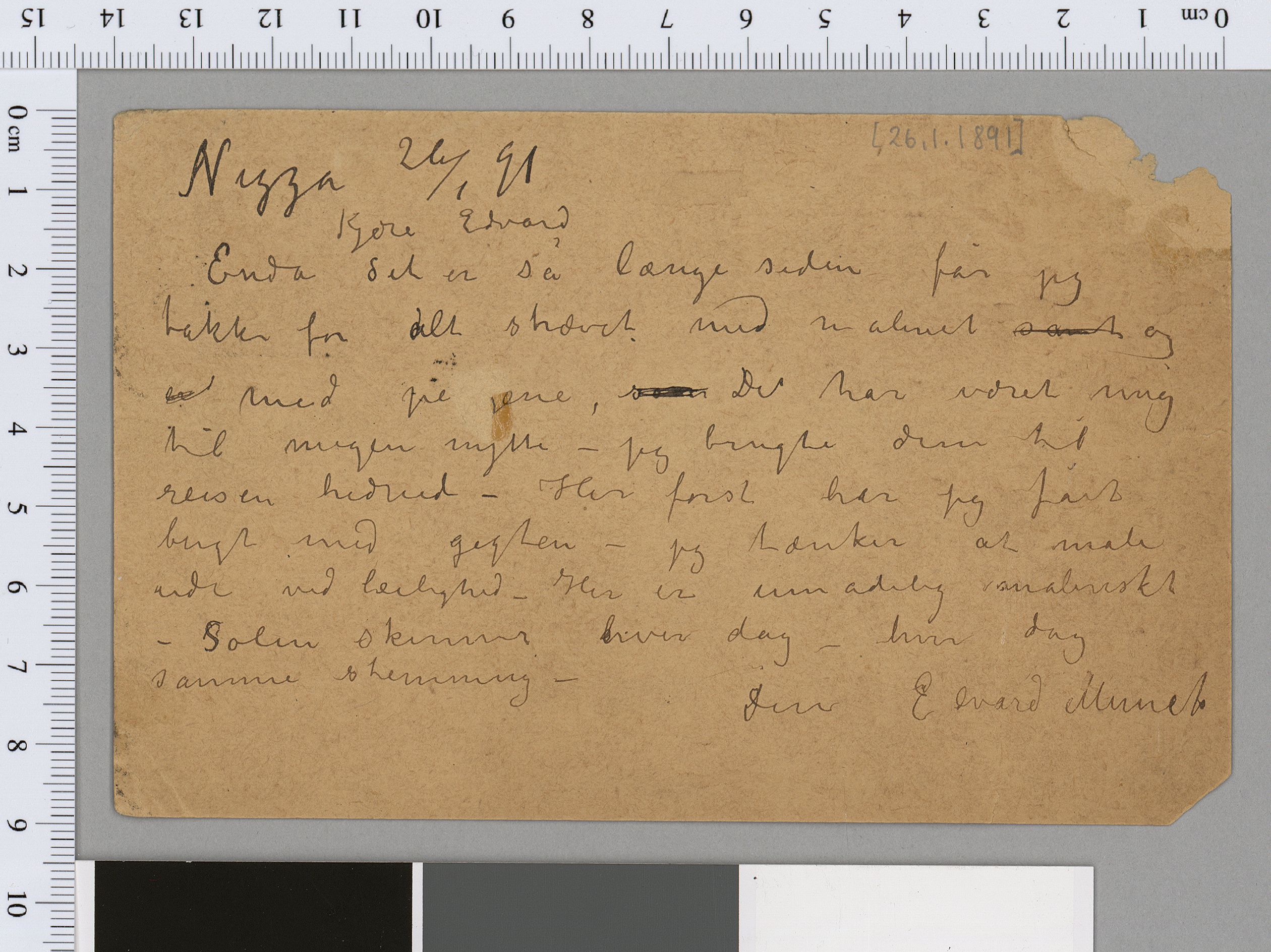 Ms.fol. 2071:5:20 (PN 772), Nasjonalbiblioteket. Datert 26.1.1891. Brev til Edvard Diriks