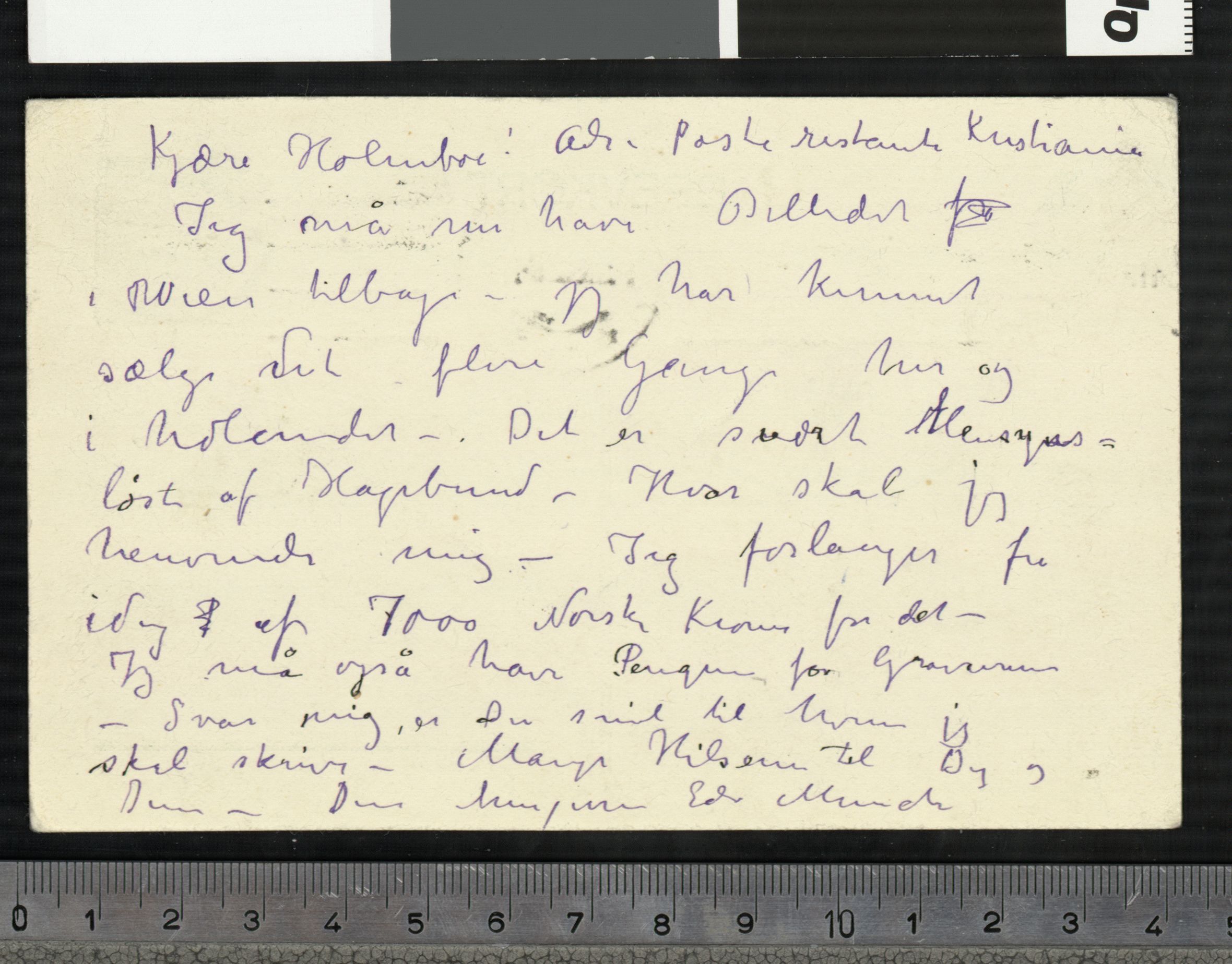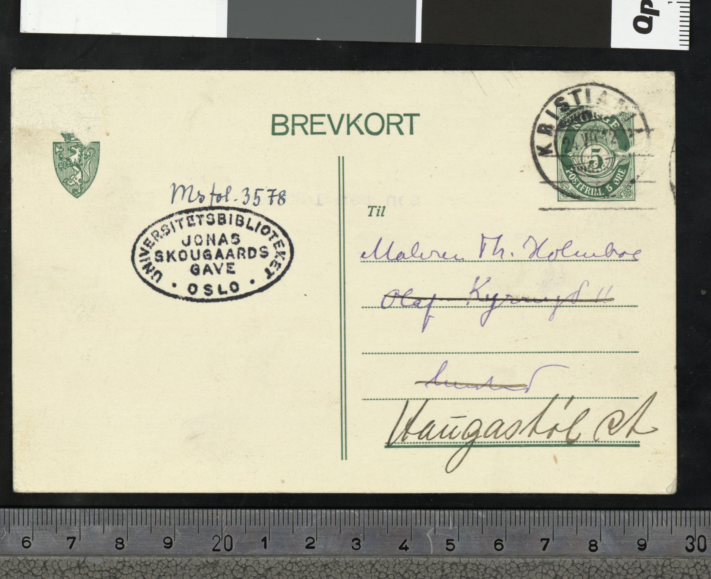 Ms.fol. 3578 (PN 778), Nasjonalbiblioteket. Datert 24.7.1912. Brev til Thorolf Holmboe