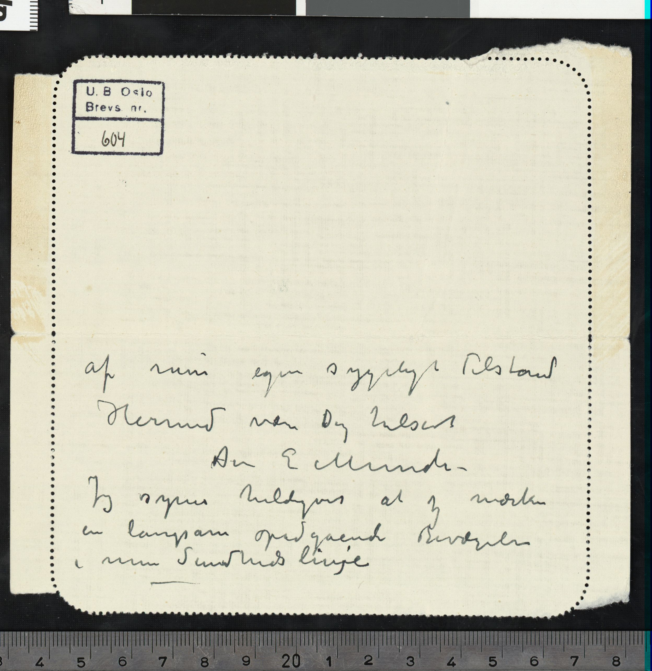 Brevs. 604 (PN 1238), Nasjonalbiblioteket. Datert 1909. Brev til Jappe Nilssen