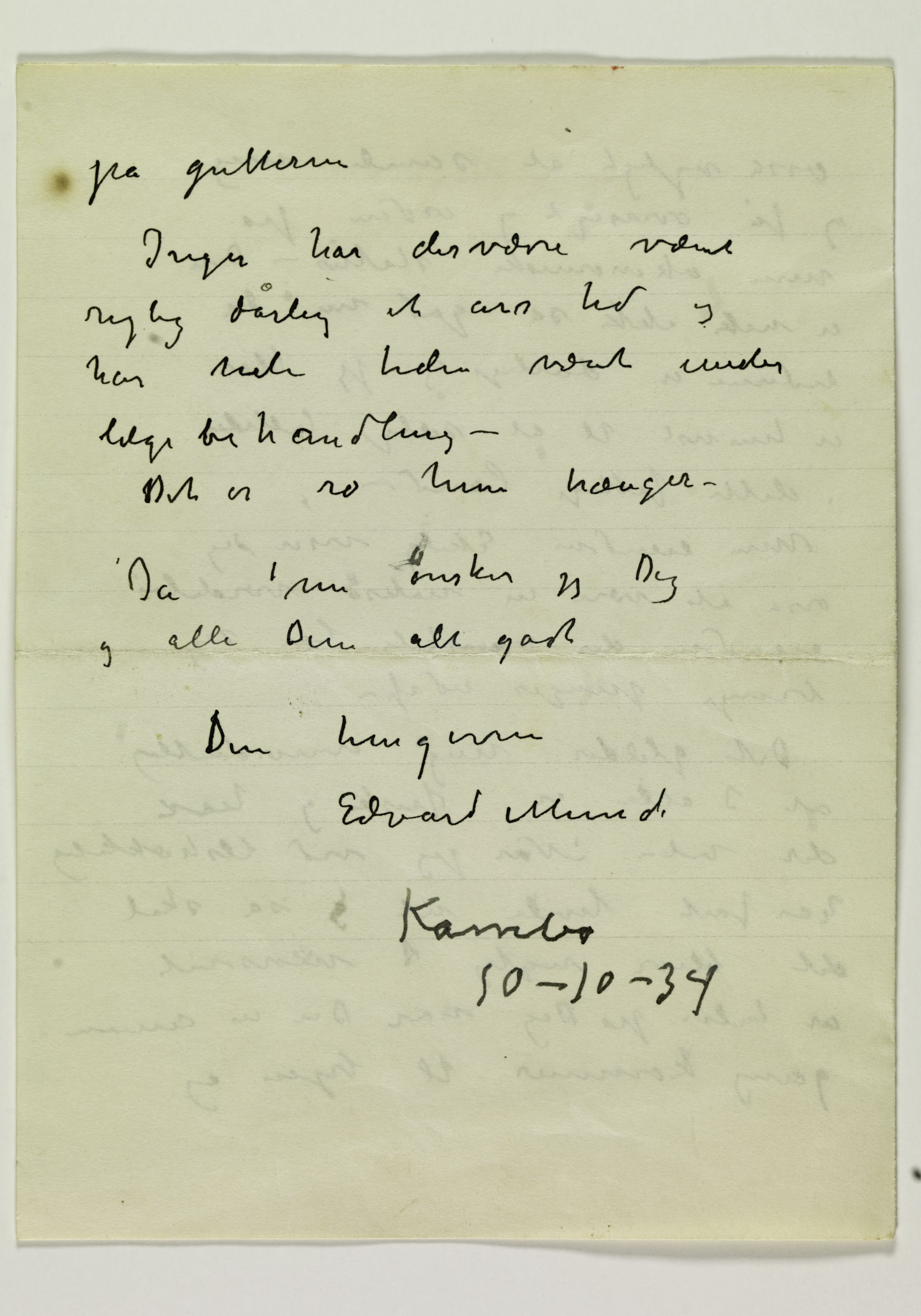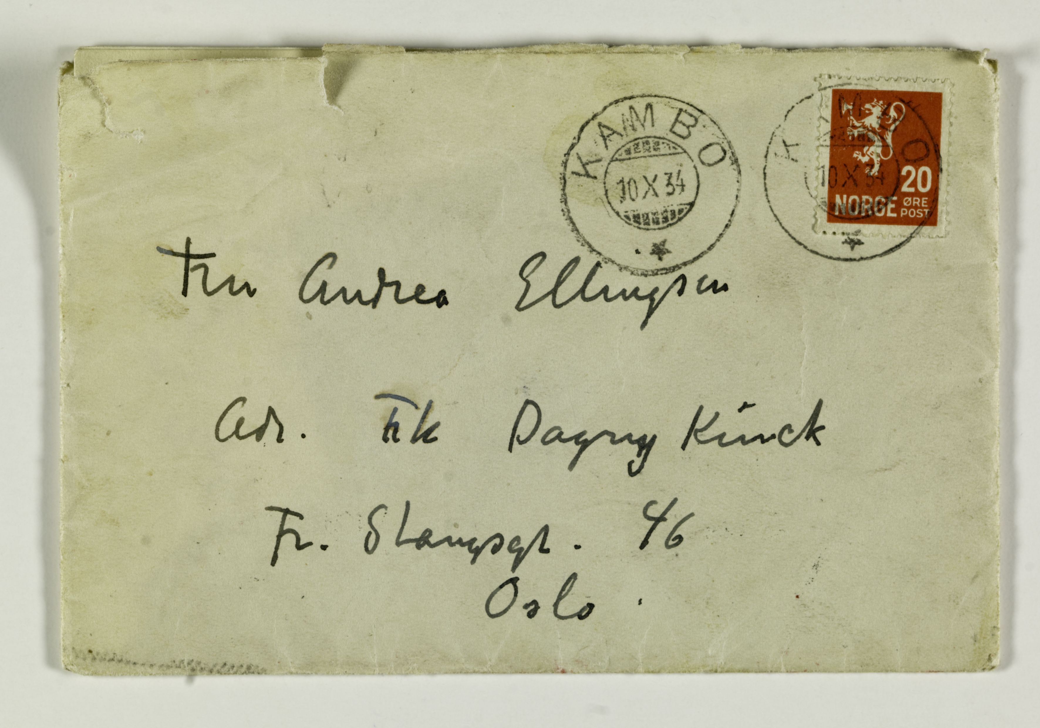 RA/PA - 1299 (PN 1251), Riksarkivet. Datert 10.10.1934. Brev til Andrea Munch-Ellingsen