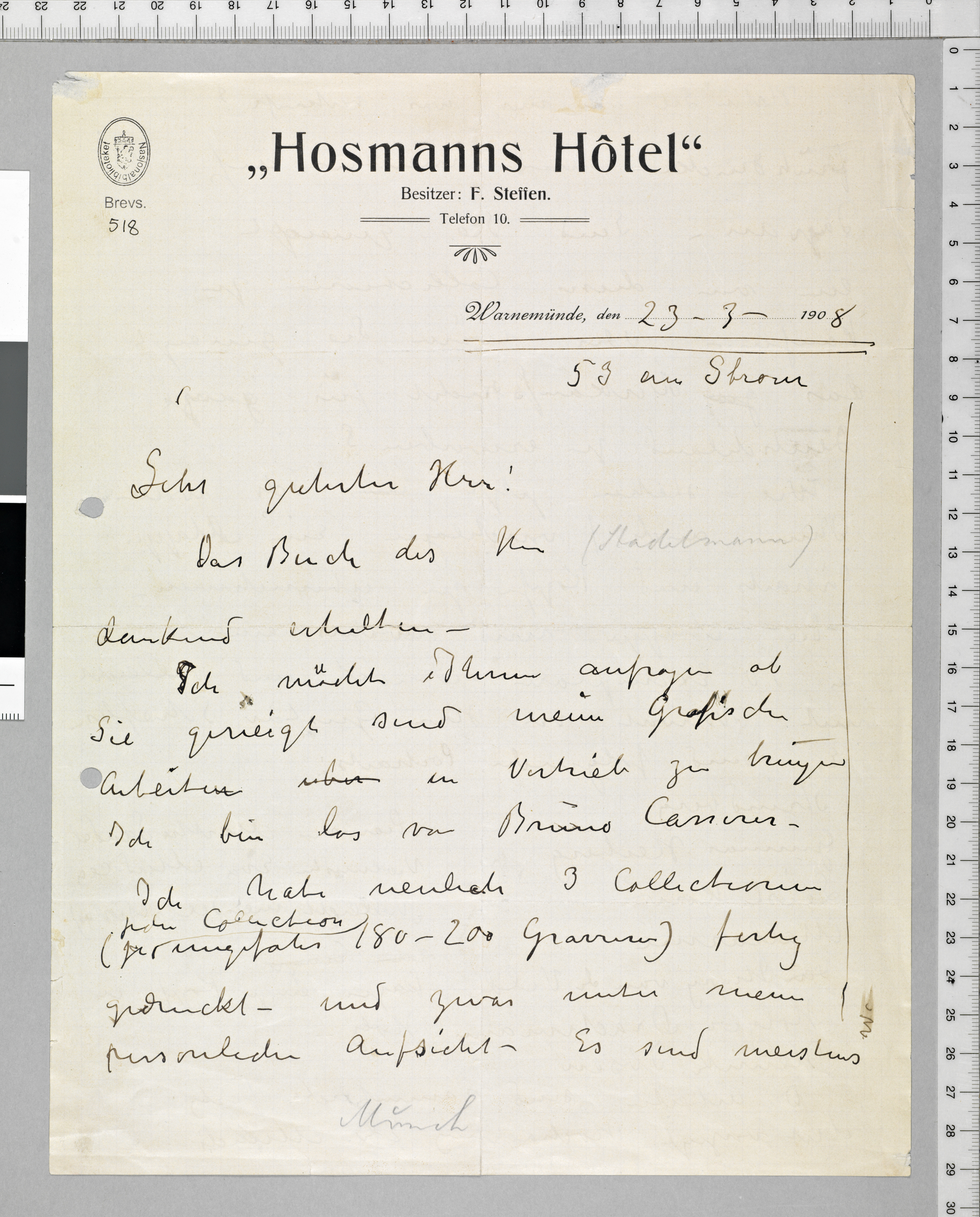 Brevsaml. 518 (PN 1318), Nasjonalbiblioteket. Datert 23.3.1908. Brev til Piper & Co.