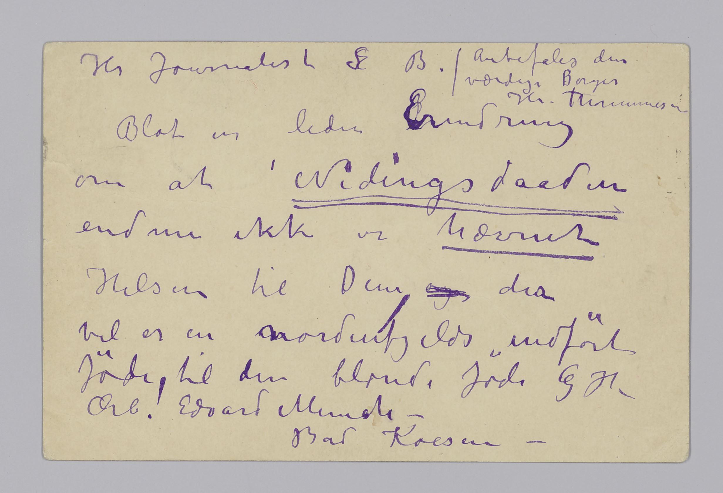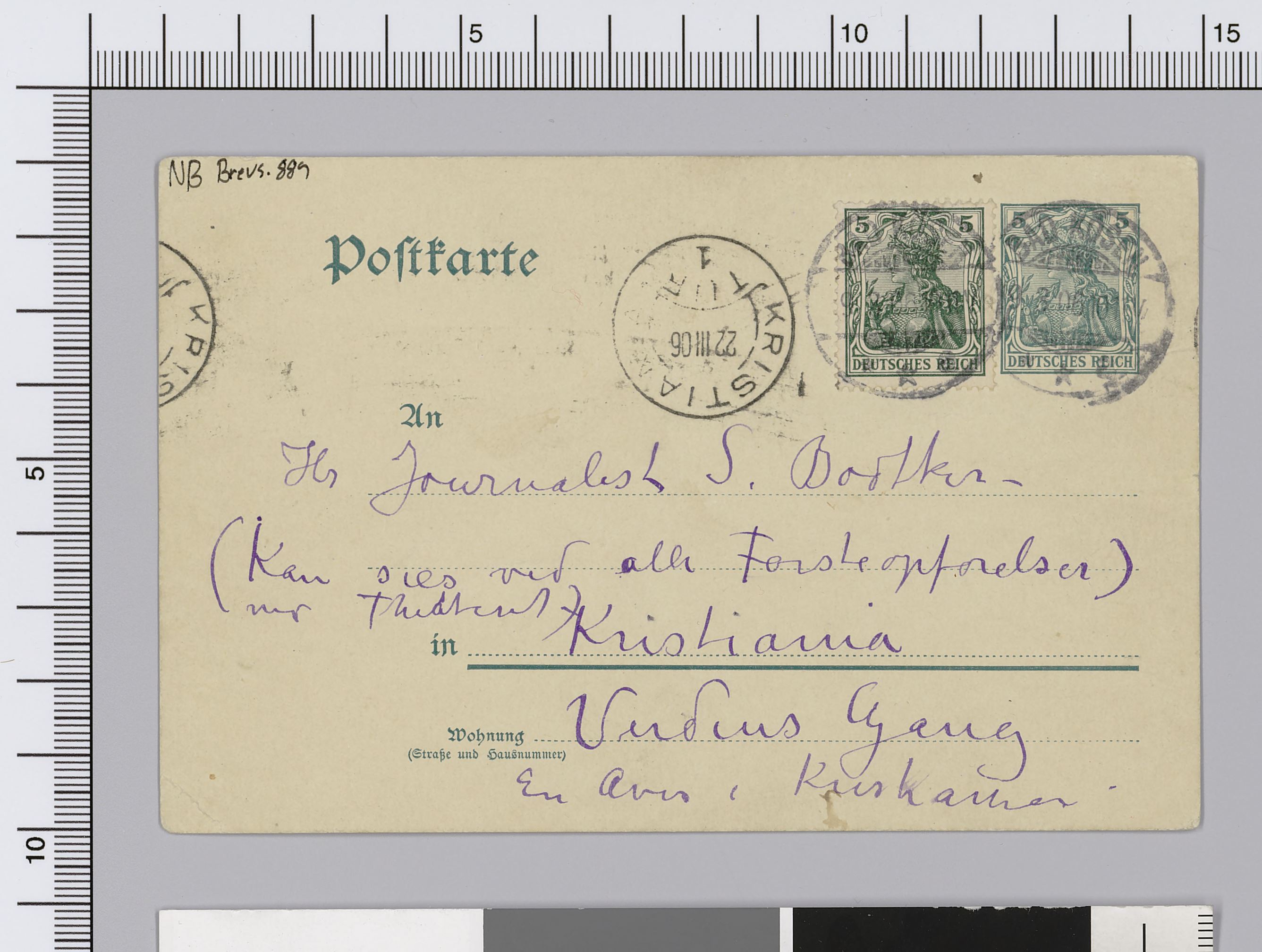 Brevs. 889 (PN 1333), Nasjonalbiblioteket. Datert 22.3.1906. Brev til Sigurd Bødtker