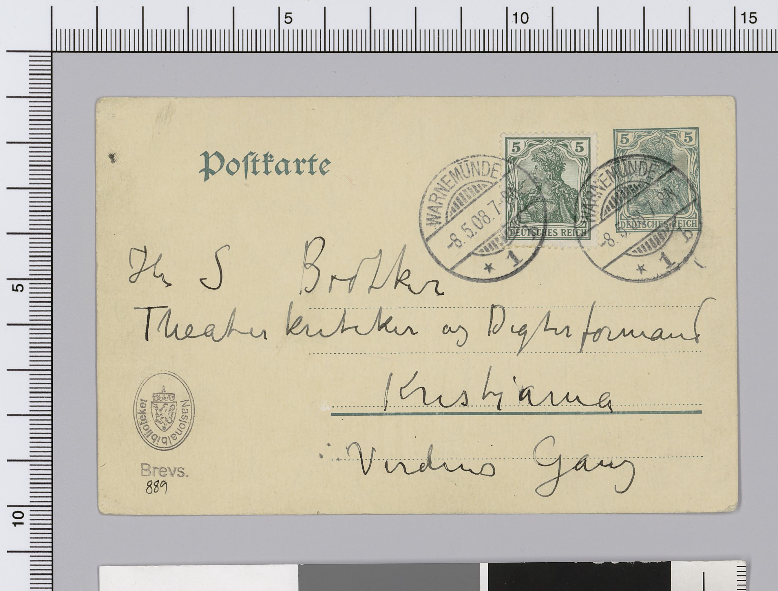 Brevs. 889 (PN 1336), Nasjonalbiblioteket. Datert 8.5.1908. Brev til Sigurd Bødtker