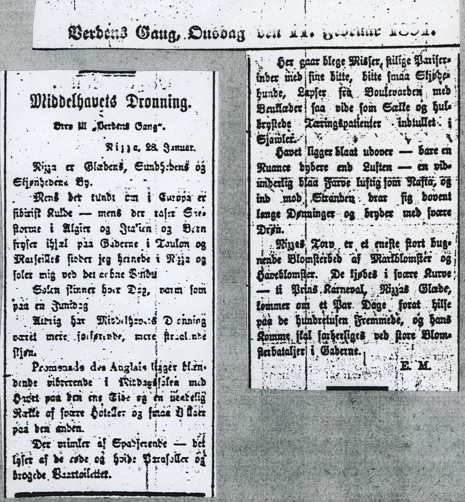 While a Siberian Frost reigns all over Europe – while Snowstorms rage in Algeria and in Italy, and Children freeze to death in the Streets of Toulon and Marseille, I sit here in Nizza bathing in the Sun at an open Window.
