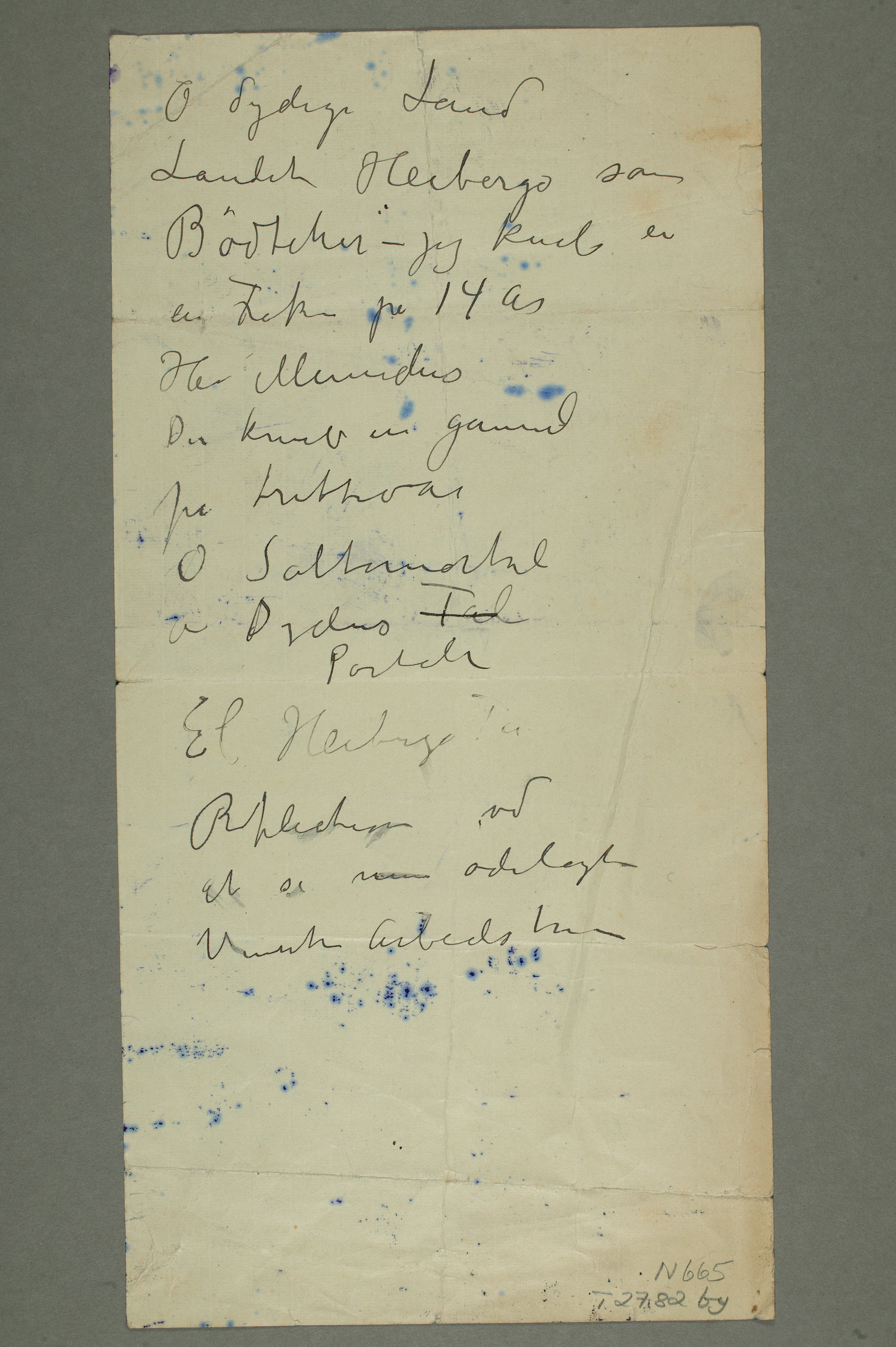 A tongue-in-cheek poem scattered with 'spaghetti' Latin phrases. “Oh beauteous land/ in specto nori saltro”.