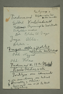 Omtalte personer og institusjoner: H. M. Neumann, Per Munch, Rolf Jørgen Fuglesang, Dorothy Boleyn Drewry, Ingse Vibe, Vilhelm Frimann Koren, Signe Lang-Ree, Bernhard Rostad, Uidentifisert mann, Kaare Mathisen, Heinrich Hudtwalcker, Marit Blehr Schlytter, , Thoralf Tidemann, Charlotte Mustad, Nicolai Mustad, Lucien Dedichen, Ingrid Brun Løchen, Nasjonalgalleriet, Kultur og Folkeopplysningsdepartementet, Christiania Kunstforening, Unge Kunstneres Samfund, Kunstnernes hus