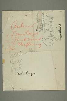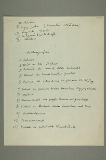 Edvard Munchs lister over egne kunstverk. Det dreier seg om utstillings- og pakkelister, med og uten priser. 15 objekter med tekst er tilgjengelige i det digitale arkivet.