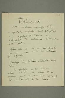 «Alle malerier tegninger skitser og grafiske arbeider samt{s}lithografisk stene træplater til træsnit samt kobberplater til raderinger testamenterer jeg til staten.»