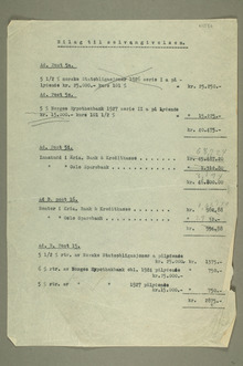 Omtalte personer og institusjoner: Ejnar Voss, Akers Ligningsvæsen, Akers Ligningsråd, Akers ligningskontor, Vestby Ligningskontor, Christiania Bank og Kreditkasse (Kreditkassen), Oslo Sparebank, Christiania Sparebank, Gyldendal Norsk Forlag AS, Kunstnerforbundet
