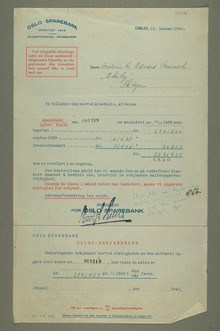 Omtalte personer og institusjoner: , , Idun, Norske liv, Christiania Bank og Kreditkasse (Kreditkassen), Oslo Sparebank, Christiania Sparebank, Gyldendal Norsk Forlag AS, Kunstnerforbundet, Bruno Cassirer Kunstverlag, Oslo Sparebank, Christiania Sparebank, Gyldendal Norsk Forlag AS, Kunstnerforbundet